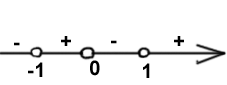 Прировняв производную нулю, находим три корня: 0, 1, -1. Эти точки разбивают числовую прямую на промежутки (- ; -1), (-1;0), (0;1), (1; + ). Если х>1, то у'>0, а в остальных промежутках знаки чередуются справа на лево, смотри рисунок.