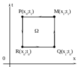 x = x1 та t = t0. Прямі х = х0, х = х1, t = t0, t = t1 як було показано раніше, є характеристиками рівняння (1.1). Область буде являти собою прямокутник MPRQ. У цій області ми можемо застосувати метод Рімана для знаходження розв’язку.