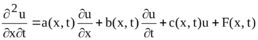де (x) та (t) задовільнюють вимогам диференцюємості та спряження. Коефіцієнти a, b та c будемо вважати неперервними функціями x та t.