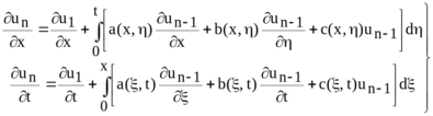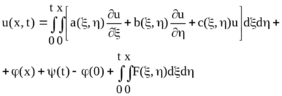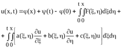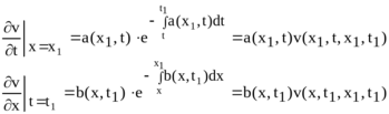 Приводячи подібні, та враховуючи, що v(x1, t1, x1, t1) = 1, u(x0,t) = (t), u(x, t0) = (x) та ;