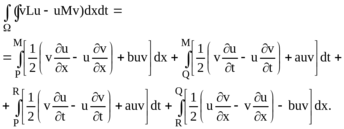 Одже, вираз vLu – uMv являє собою суму частинних похідних по xi від деяких виразів Pi, тобто