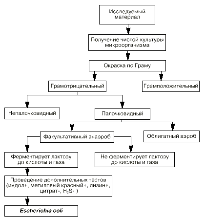 Наибольшее практическое значение имеют схемы идентификации, основанные на морфофизиологических, тинкториальных, метаболических и других легко выявляемых свойствах бактерий ( рис.2) [ 4]. Определение этих свойств в ходе диагностики позволяет не только выделять и идентифицировать чистые культуры, но и дифференцировать их с представителями сопутствующей микрофлоры, не связанными с заболеванием. Более того, даже начальные этапы исследования могут дать ценную информацию для выбора средств этиотропной терапии.