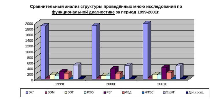 оличество исследований функциональных исследований проведенных лично мною в сравнении с общим количеством исследований за 1999 – 2001 гг.