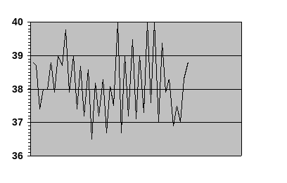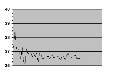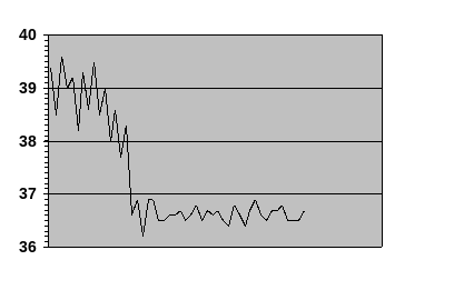 Рис. 5. Температурная кривая при остром остеомиелите. Повышение температуры до высоких цифр наблюдалось только в первые дни, в дальнейшем – субфебрильная температура.
