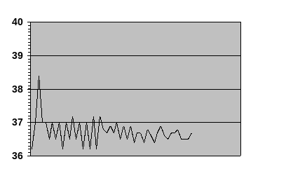 ис. 2. Падение температуры и последующее ее повышение при задержке гноя или при возникновении метастазов и осложнений со стороны суставов.