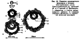 Этапы развития доминантного фолликула: Примордиальный фолликул состоит из яйцеклетки, окруженной одним рядом уплощенных клеток фолликулярного эпителия (рис. 14). В процессе созревания фолликула яйцеклетка увеличивается в размере, клетки фолликулярного эпителия размножаются и округляются, образуется зернистый слой фолликула (stratum granulosum). В гранулезных клетках зреющего фолликула имеются рецепторы