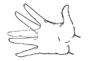 Рис. 6. 6. Веерообразно раскрывать пальцы в воздухе круговым движением от себя с одновременным раскрытием ладони (рис. 6). При возвращении в исходное положение пальцы собираются, второй палец соприкасается с первым. Выполняют упражнение только пальцами, не вращая кисть в лучезапястном суставе, или с круговыми движениями рук, которые ощущают как единое целое.