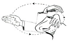 Рис. 15 круговое движение при спокойном положении руки то вправо, руки то вправо, то влево (рис. 15). То же повторяют другой рукой.