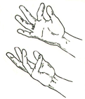 онимают руку вверх. При этом упражнении вся рука, включая и пальцы, выпрямлена и находится в лёгком напряжении. Затем роняют все пальцы (большой