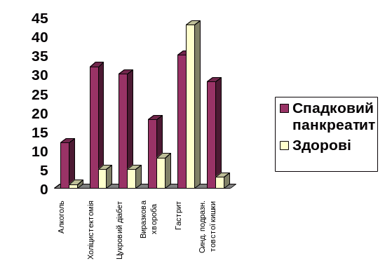 Мал 3. Порівняльна характеристика хворих спадковим панкреатитом і здорових в сім’ї S.