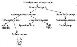 Схема образования лейкотриенов, простагландинов и тромбоцит-активируюшего фактора