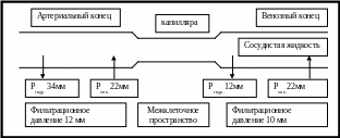 Схема движения жидкости между периферическими сосудами и внеклеточной жидкостью