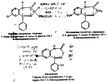 Препараты данной группы при С-5 содержат фениль-ный радикал, при С-7 — атом галогена (хлор или бром) или нитрогруппу (нитразепам).