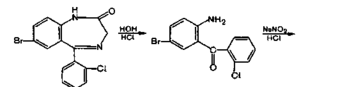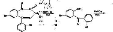 При нагревании нитразепама с цинковой пылью в кислой среде, кроме гидролитического разложения, происходит восстановление ароматической нитрогруппы до аминогруппы с образованием 2,5—диаминобензофено-на, который дает реакции диазотирования и азосочета-ния по обеим аминогруппам: