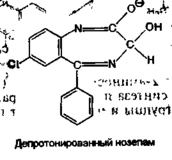Наряду со слабоосновными свойствами сибазон, нозепам и нитразепам проявляют и слабокислотные свойства; они реагируют с сильными основаниями, например с диметилформамидом, образуя соответствующие анионы. Так, сибазон (слабая СН-кис-лота) и нозепам (слабая NH-кислота) образуют соответствующие депротонированные соединения (анионы): , „ *