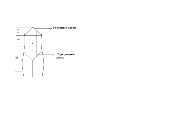 Правая граница – по среднеключичной линии справа до печёночной тупости, вверх на один палец, палец параллельно грудине. Норма – 1-1,5 см. от края.
