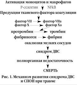 | Высвобождение тканевых факторов | Акушерская патология ( отслойка плаценты, эмболия околоплодными водами, внутриутробная смерть плода, аборт во втором триместре беременности. Гемолиз Опухоли Жировая эмболия Повреждение тканей ( ожоги, отморожения, огнестрельные раны) |