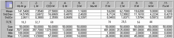 При написании данной статьи произведена большая работа по статистической обработке всех гематологических показателей крови при пневмонии и гриппе, учитывая пол больных. Были получены средние значения всех показателей, ошибка средней величины, рассчитаны среднеквадратические отклонения и коэффициенты вариаций.