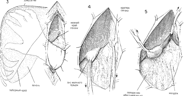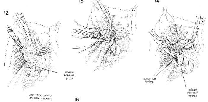 Если была разделена круглая связка, ее вновь сближают и кроме того устраняют щель в серповидной связке. Затем вдоль линии швов кладут теплый влажный марлевый тампон, чтобы убедиться, что нет подтекания и поле совершенно сухое. В ложе печени поверх закрытия можно наложить какой-то коагулянт. В качестве дополнительного средства. помогающего отгородить эту область, можно использовать большой саль ник, прижав его к ложу желчного пузыря. Обычно делают культуру желчи желчного пузыря.