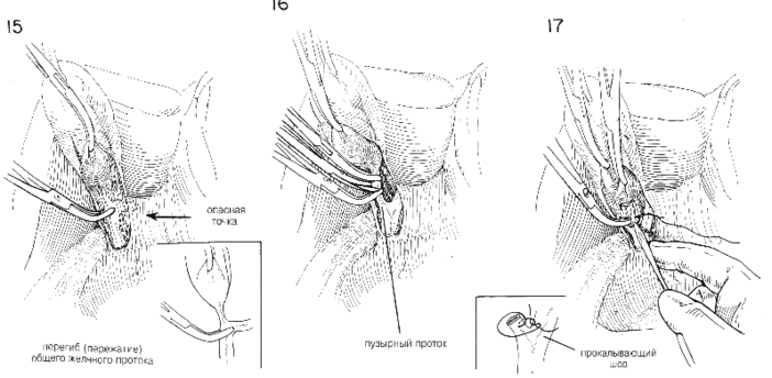 ЗАКРЫТИЕ. Стол располагают горизонтально, и перед тем, как при ступить к закрытию, убирают валики или подушки, использованные для поднятия реберного края, чтобы не было ненужного натяжения на структуры брюшной стенки. Каждый хирург может выполнять закрытие привычным ему методом. Если использовался поперечный разрез или косой разрез Кохера, разгружающие швы не нужны; но если использовался обычный правый парамедианный разрез, особенно у престарелых и тучных пациентов, или если предполагаются кардиореспираторные проблемы, целесообразно рассмотреть разгружающие швы. Некоторые избегают дренирования, когда поле сухое и нет свидетельств протечки из дополнительных протоков.
