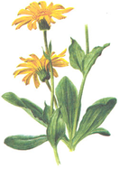 Описание растения. Арника горная — многолетнее травянистое растение семейства сложноцветных. Имеет ползучее корневище, расположенное на глубине 0,5— 3 см, а иногда и на поверхности почвы. Верхушки корневища и его разветвлений заканчиваются розетками листьев и генеративными побегами. Соцветия — верхушечные, одиночные корзинки, темно-желтые или оранжевые.