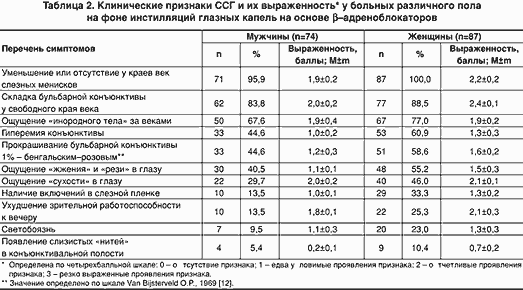 Вместе с тем практикующие офтальмологи относительно редко обращают внимание на признаки ССГ у больных с глаукомой, имеющие несомненно меньшее значение по сравнению с динамической оценкой компенсации у них «основного заболевания». В конечном итоге затрудняется диагностика и, соответственно, своевременное лечение ССГ, находящегося на «заднем плане» на фоне глаукомного процесса. В частности, ни одному из обследованных нами пациентов с первичной открытоугольной глаукомой, получавших препараты на основе -адреноблокаторов, окулистами поликлиник не был выставлен диагноз ССГ и, соответственно, не была назначена адекватная терапия. Таким образом, рассматриваемая проблема является актуальной для нашей страны и требует дальнейшего изучения.