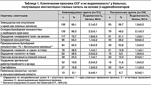 Цель настоящего исследования состояла в изучении особенностей клинического течения ССГ, стимулированного систематическими инстилляциями препаратов на основе -адреноблокаторов, и разработке оптимального перечня лечебно–диагностических мероприятий, проводимых таким больным.