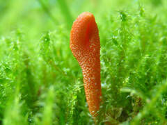 Кордицепс(Cordiceps). Этот гриб обладает уникальным циклом развития. Он паразитирует на гусеницах определенного вида бабочек - Hepialide (бабочка "летучая мышь").