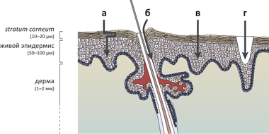 Размер молекулы или частицы – не более 3 кДа, остальные не проходят через роговой слой вообще и остаются на поверхности;