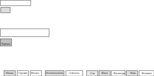 Анкета включала наступні розділи: наявність стресів, їх частота і способи подолання; шкідливі звички (паління, вживання алкоголю); переважні в раціоні продукти; заняття фізкультурою і спортом; спадковість; знання факторів ризику виникнення ГІМ; питання самодопомоги і взаємодопомоги в гострих серцево-судинних станах. Отримано наступні результати. Більш третини респондентів, що часто знаходяться в стані стресу, відносяться до критичної щодо ГІМ вікової категорії 40-59 років. Велика частина - 82,9% опитаних вживають алкоголь помірно, епізодично або рідко. Серед тих, які часто знаходяться в стані стресу, 40% викурюють більш 9 сигарет у день. Більш половини зловживають сіллю в їжі, 68,7% з них - люди у віці старше 30 років; більш половини регулярно вживають каву, біля третини з них – зловживають цим напоєм.