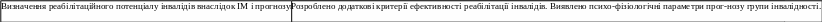 На підставі класифікації ХСН (NYHA, 1964), керівництва Українського товариства кардіологів для використання в клінічній практиці, «Посібника з оцінки обмежень життєдіяльності при визначенні інвалідності», з урахуванням програми реабілітації і результатів дослідження, побудовано модель прогнозу групи інвалідності для осіб, що перенесли ГІМ (табл. 3).