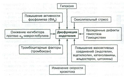 Рис.1. Причины дисфункции эндотелия при гестозе.