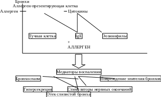 Схема взаимосвязи воспаления дыхательных путей и симптомов БА