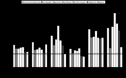 | Диосмин, 100 мг/кг | ± - + + | + + + | + + ± | + + ± | + + | ± + ± ±+ |