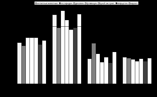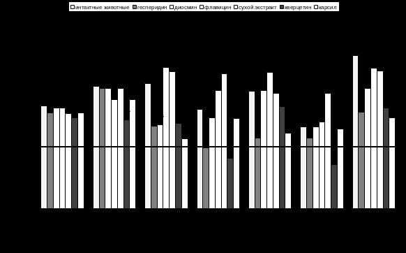 | Диосмин, 100 мг/кг | + + + + | - + + | + ± ± | + ± + ± | ++ + + + |