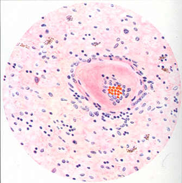 Рис.1 Гиалиноз артериолы мозга при гипертонической болезни