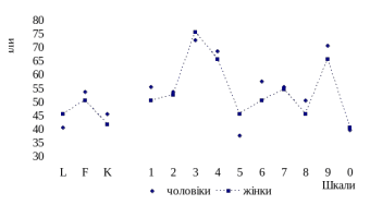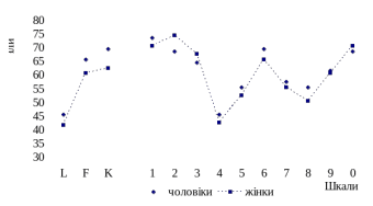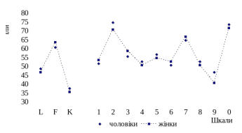 Рис.1. Перший варіант усередненого профілю особистості чоловіків і жінок