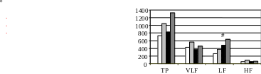 Дослідження ВСР проводили у лежачому положенні (5,0 хв.) та під час ортостатичної проби (6,0 хв.), використовуючи електрокардіограф ВНС-мікро® і програмне забезпечення Нейрософт® (Росія). Результати оцінювали згідно сучасних кардіоритмологічних стандартів (Task Force of the ESC/NASPE, 1996). Аналізували наступні спектральні показники ВСР: загальну спектральну потужність (ТР, мс2; 0,003-0,4 Гц); дуже низькочастотні коливання, які відображають активність центральних механізмів регуляції (VLF, мс2; 0,003-0,04 Гц); низькочастотні коливання, які переважно характеризують симпатичну активність (LF, мс2; 0,04-0,15 Гц); високочастотні коливання, які відображають здебільшого парасимпатичну активність (HF, мс2; 0,15-0,4 Гц); співвідношення LF/HF – автономний баланс. Крім того, вивчали часові показники: SDNN (мс) – стандартне відхилення величин нормальних RR-інтервалів (відображає сумарний вплив вегетативної нервової системи на активність синусового вузла); RMSSD (мс) – квадратний корінь із середнього значення квадратів різниці величин послідовних RR-інтервалів (характеризує парасимпатичну активність); pNN50 (%) - відсоток послідовних RR-інтервалів, які відрізняються більше, ніж на 50 мс (відображає парасимпатичну активність); коефіцієнт 30:15 (К30:15) – коефіцієнт реактивності фізіологічних механізмів під час ортостатичної проби.