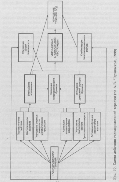 Все эти саногенетические процессы лежат в основе муколитического и противовоспалительного эффектов галотерапии. На фоне ее проведения у больных уменьшается одышка и количество хрипов в легких, улучшаются показатели газообмена и функции внешнего дыхания, общее состояние (рис.3).