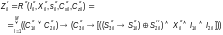 Група клінічних діагнозів які відрізняються різноманітними клінічними проявами, може бути описана у вигляді фрейму, тобто деякої структури, що описує безліч ситуацій, які можуть мати місце при формуванні діагнозу. Ядром кожного такого фрейму має бути визначена нозологія або клас захворювань, у якості якого може виступати один з елементів статистичної класифікації − міжнародної класифікації хвороб D(K) (1), і при цьому фрейм діагнозу не може бути порожнім (2). Фрейм діагнозу F(d) містить слоти клінічних характеристик Zi і слова-константи, що не залежать від слоту КХ С0 (3). Слот КХ(4,5) містить у собі знаки-роздільники Ii: I1i,I2i, змінні КХ Xi, знаки які визначають обов'язковість, умовність і можливість наявності декількох значень даної КХ одночасно Si:s1i,s2i,s3i, слова-константи які відносяться до змінної Cx: С1i,С2i, слова-константи C3i за слотом КХ, ряд вкладених слотів зі змінними P(Xi). Вкладений слот P(Xi) залежить від виконання відношення R(Ii,Si,Xi,Сi) (6). Кожній змінній як основної, так і залежної клінічної характеристики, відповідає хоча б одне можливе значення даних D(Xi) (7,8), D(Xij) (9). Значення основної змінної КХ D(Xi) може бути простим xik і комплексним F(Xi) (8), а значення залежної змінної (КХ) D(Xij) − тільки простим xijm (9). У випадку комплексного значення змінної маємо справу з фреймом другого рівня F(Xi) (10), модель якого еквівалентна F(d). Особливістю фрейму другого рівня є виключення зон залежних КХ (11). Як дані D(Xij) пов'язані з клінічними характеристиками фрейма другого рівня, можуть виступати тільки прості значення xils (12).