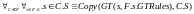 , де F − абстрактний фрейм, C − фрейм, F.S – множина слотів супер-фрейму, Copy – предикат, що описує процес копіювання відповідної частини мережі, яка пов’язана з успадкованим слотом, GT – предикат, який описує синтаксичну трансформацію термінів при успадкуванні на основі описаних правил GTRules для даного слоту.