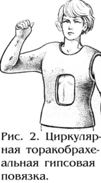 Гипсовые повязки могут быть либо в виде шин ( рис1.), либо в виде циркулярных повязок (рис 2). Если в раннем посттравматическом периоде применяется циркулярная гипсовая повязка, то больной должен быть оставлен для дальнейшего лечения и наблюдения в специализированном лечебном отделении до уменьшения или полного исчезновения отека поврежденного сегмента конечности. Если же для лечения применяется гипсовая шина, то больной может проводить дальнейшее лечение и в амбулаторных условиях.