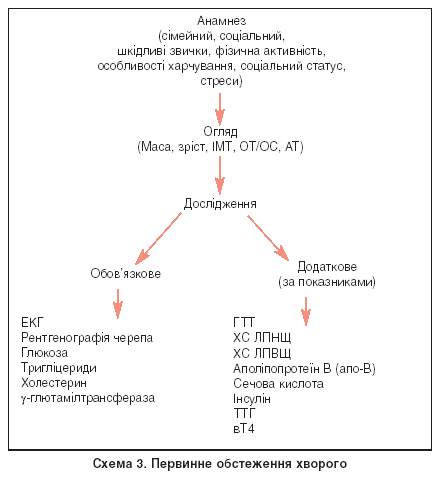 Ожиріння входить до складу метаболічного синдрому – симптомокомплексу поєднаних між собою патологічних станів (інсулінорезистентності, порушення вуглеводного і ліпідного обміну, артеріальної гіпертензії). Синдром не вважається окремим діагнозом або нозологічною формою, однак має важливе значення для прогнозу та терапії основного захворювання. R. De Fronzo порівняв цей стан з айсбергом: на його поверхні лежать клінічні прояви – цукровий діабет (ЦД), ішемічна хвороба серця (ІХС), артеріальна гіпертензія (АГ), ожиріння, які зазвичай і потрапляють у поле зору лікарів, а в основі – комплекс метаболічних розладів, зумовлених інсулінорезистентністю – станом, що передує розвитку хвороби.