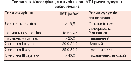 Класифікація за ІМТ використовується для діагностики ожиріння, визначення ризику розвитку супутніх захворювань і тактики лікування хворих на ожиріння. Ожиріння як хронічне захворювання потребує ефективного й адекватного лікування.