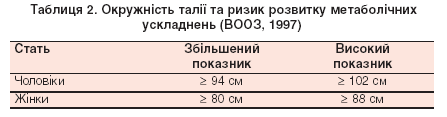 Показником клінічного ризику розвитку метаболічних ускладнень ожиріння є також величина окружності талії.