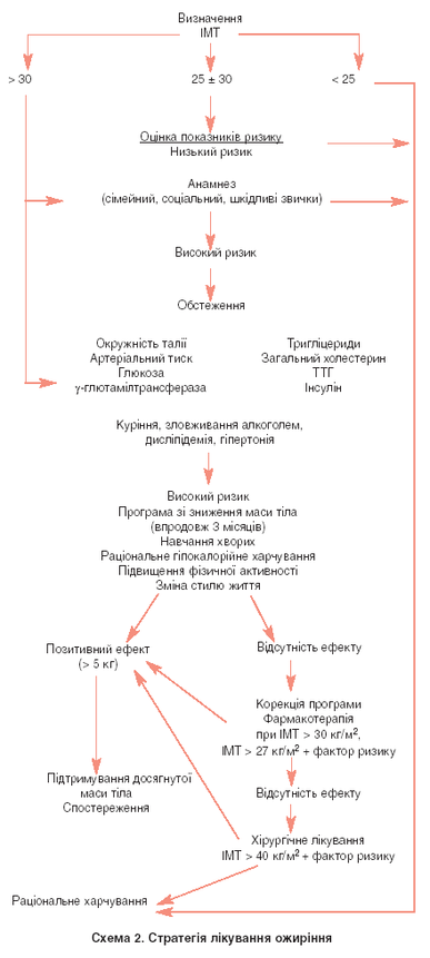 На сьогодні прийнята методика помірного поетапного зменшення маси тіла із урахуванням показника ІМТ і супутніх факторів ризику.