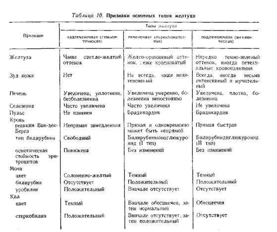 Дифференциальный диагноз проводят прежде всего с желтухой другого происхождения, в частности механической (подпеченочной) и гемолитической (надпеченочной) (см. табл. 10), В дифференциальной диагностике вирусного· и лептоспирозного гепатита большое значение имеют эпидемиологические данные. При токсическом гепатите в анамнезе больных имеются сведения о профессиональных или бытовых интоксикациях. Учитываются также результаты пункционной биопсии печени.