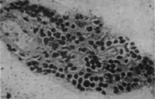 Изучение изменений в центральной нервной системе обезьян, зараженных вирусом полиомиелита, указывает, что уже в последние 1-2 дня препаралитического периода отчетливо выражены характерные для полиомиелита воспалительные изменения (рис. 1). Лишь после того как эти изменения достигают значительной выраженности, начинают появляться параличи.