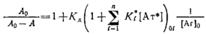Если представить экспериментальные данные в координатах A0/-=-1/0> то по тангенсу угла наклона прямой можно рассчитать Кд.