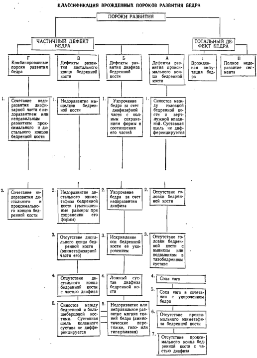 Существующие классификации Reiner, Drehman, Wilson имеют существенный недостаток, заключающийся в отсутствии четкого разграничения локализаций и типов пороков развития бедра, что затрудняет пользование этими классификационными группами.